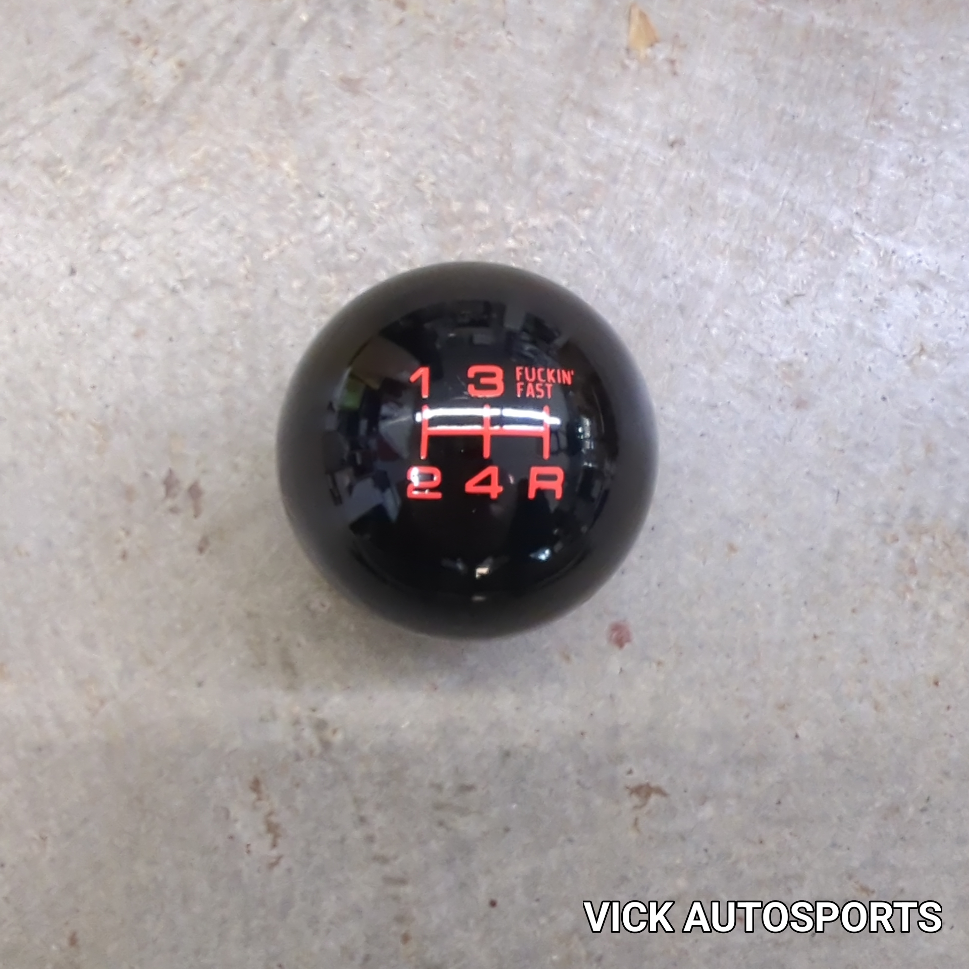 Black F’ing Fast Shift Knob. This knob has a 5 (well 4 plus f’ing fast) speed FIAT shift pattern. Included is also a locking disc that keeps the shift knob facing the correct direction.
